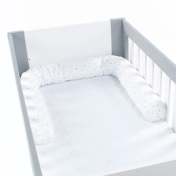Die babybay Nestchenschlange ist vielseitig einsetzbar und kann nicht nur für das babybay Beistellbett genutzt werden, sondern auch im Kinderbett oder Laufstall. Zusätzlich kann es aufgerollt auch ideal als Sitzkissen genutzt werden. Es schützt Ihr Baby vor den harten Gitterstäben im babybay und bietet zugleich zuverlässigen Schutz vor Zugluft und bietet somit eine ruhige Schlafatmosphäre. Die weiche Oberfläche aus Baumwolle sorgt für ein angenehm weiches Gefühl auf der Haut.
