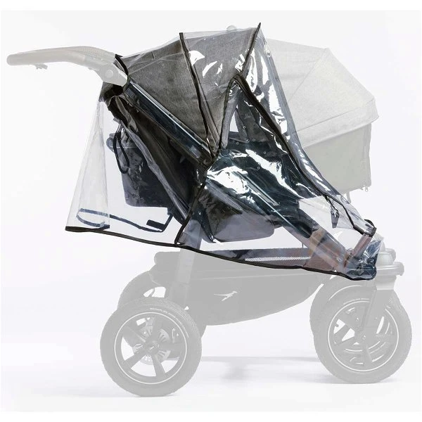 Möchten Sie auch bei widrigen Wetterbedingungen im Freien bleiben? Mit dem tfk Regenschutz duo 2 ist das absolut problemlos möglich. Dieser hochwertige Regenschutz wurde speziell für den tfk duo 2 Sportkinderwagen entwickelt und bietet eine optimale Passform. Sie können den Regenschutz in der Geschwistervariante für einen Sitzeinhang verwenden.
